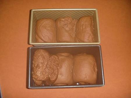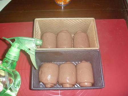 進行第二次桿捲後,放入吐司模型內,表面噴上大量水分,進行最終發酵(此時麵團還是很冰)