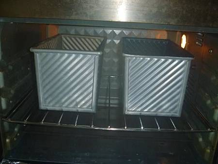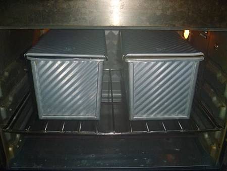 不得已只好由山形吐司,改為帶蓋吐司。以190度/160度/38分鐘 進行烘烤