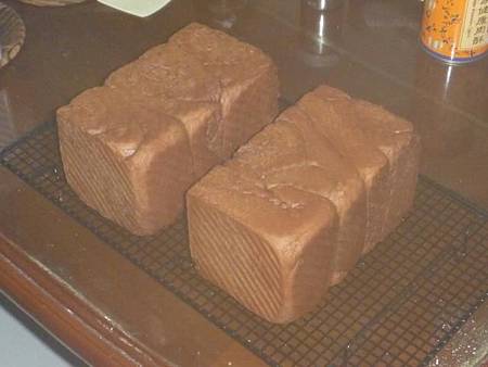 吐司出爐,沒有很滿模(因為爆裂的關係,擔心發太久會出角,結果反而沒有滿模)。
